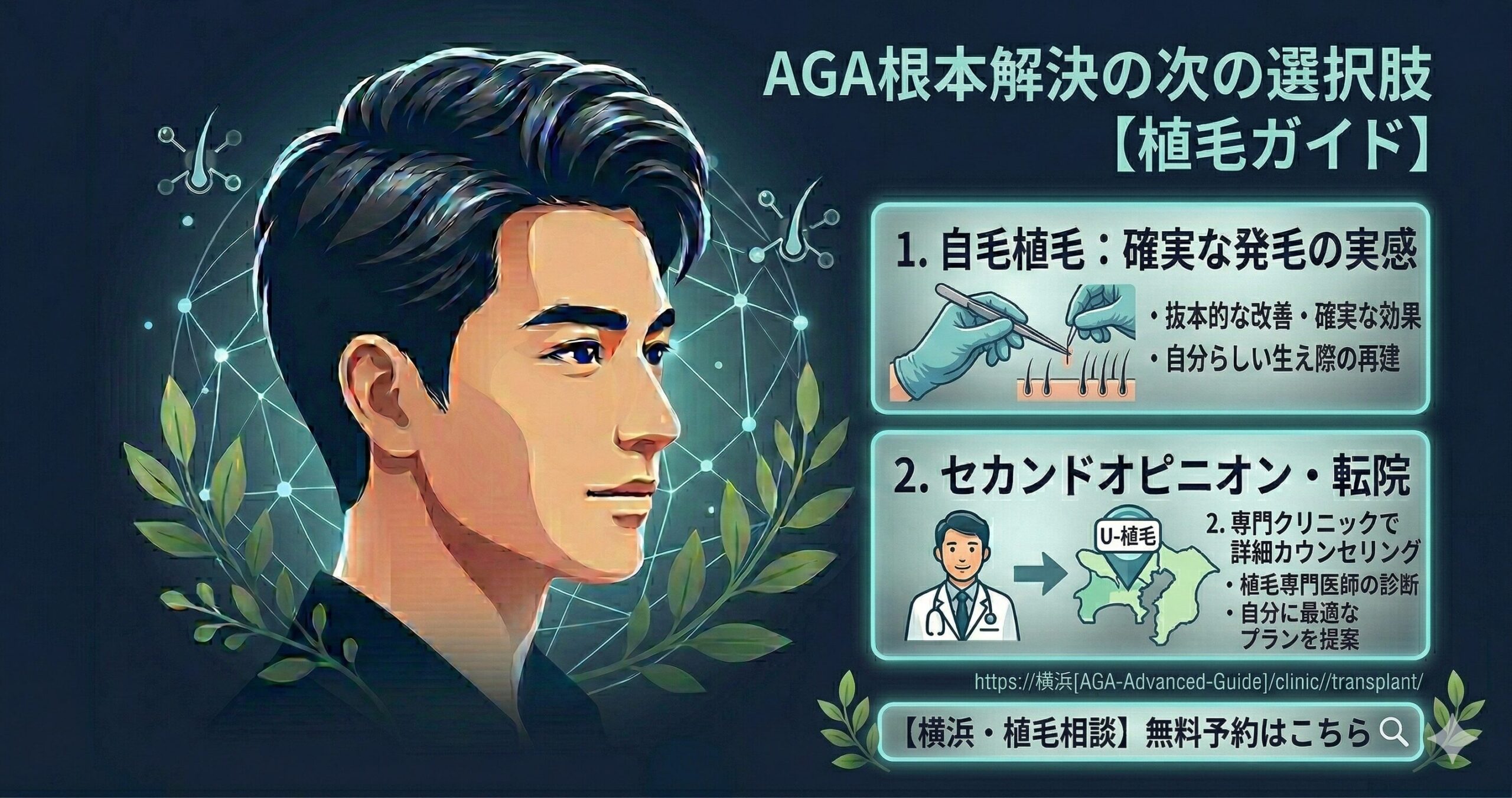 A. まずはAGAクリニックの無料カウンセリングを利用してみましょう。専門医が頭皮の状態を診て、AGAかどうかを正確に判断してくれます。自己判断よりも早く・確実に状況を把握できます。